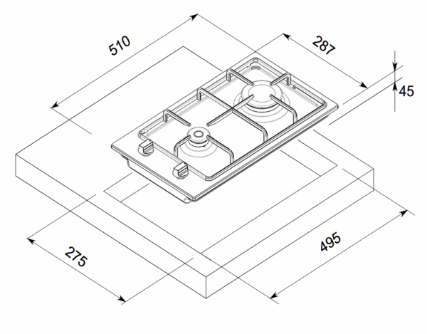 موقد غاز مدمج من الفولاذ المقاوم للصدأ (30 سم)